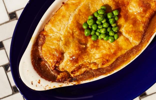 angus beef| ouille| demi| mashed potatoes| green peas